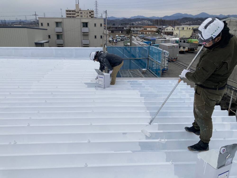 画像は某車ディーラー様の屋根遮熱塗装の様子です