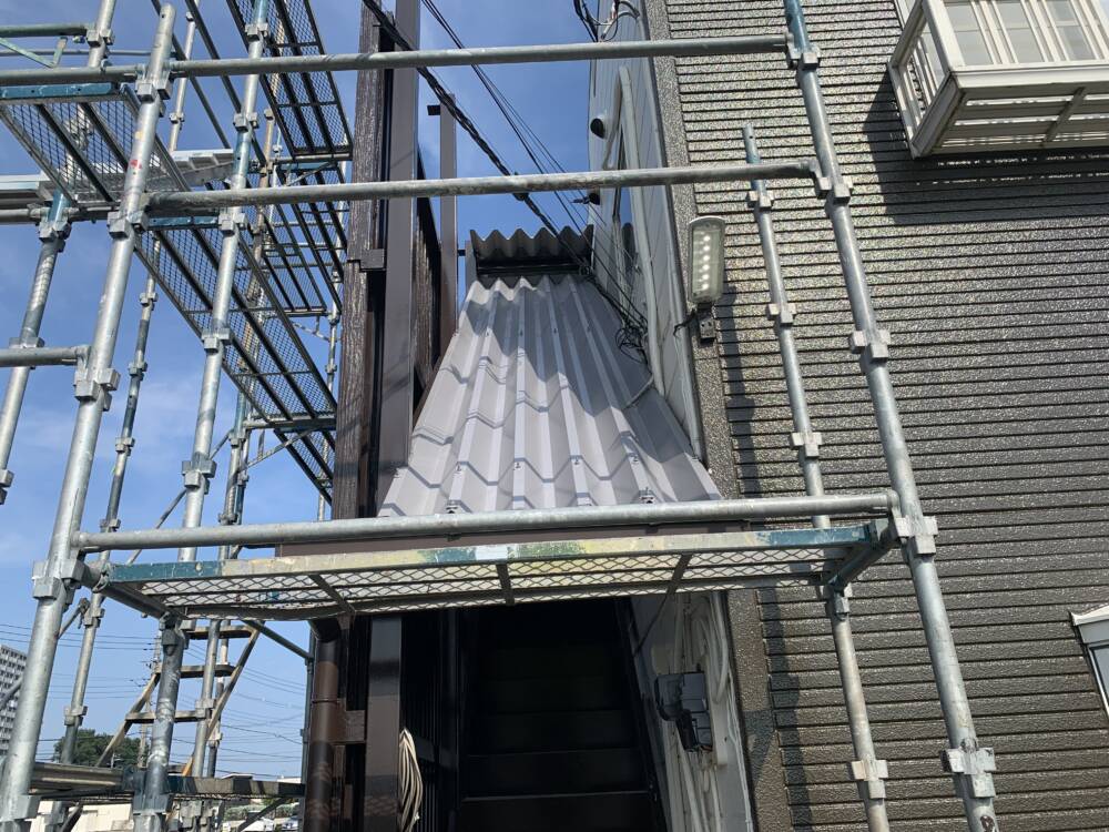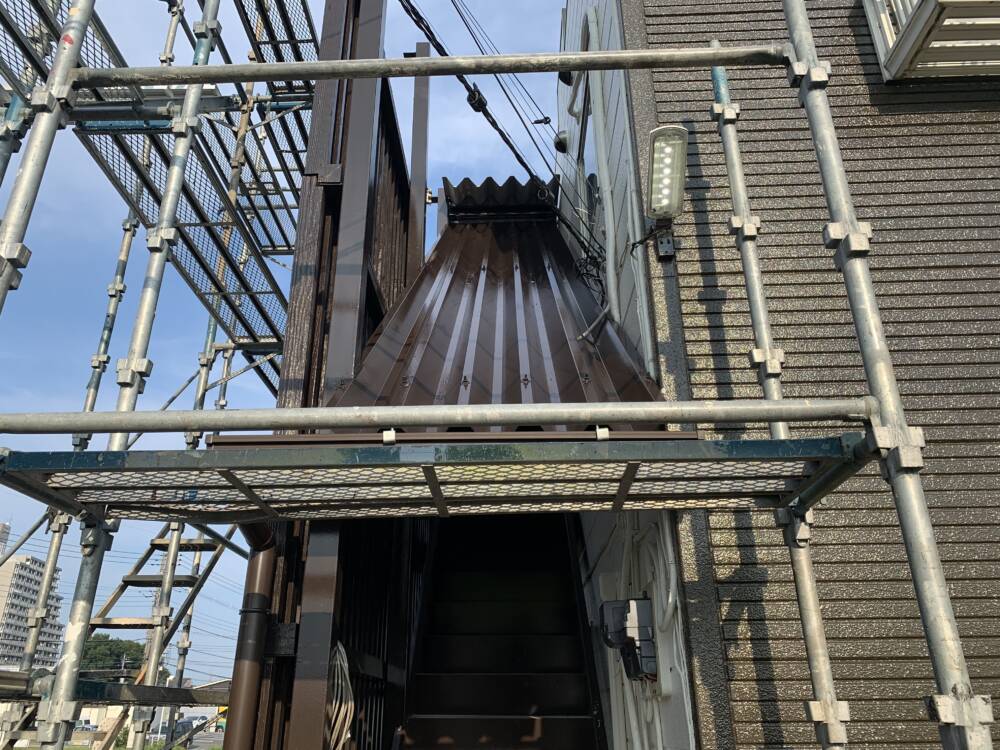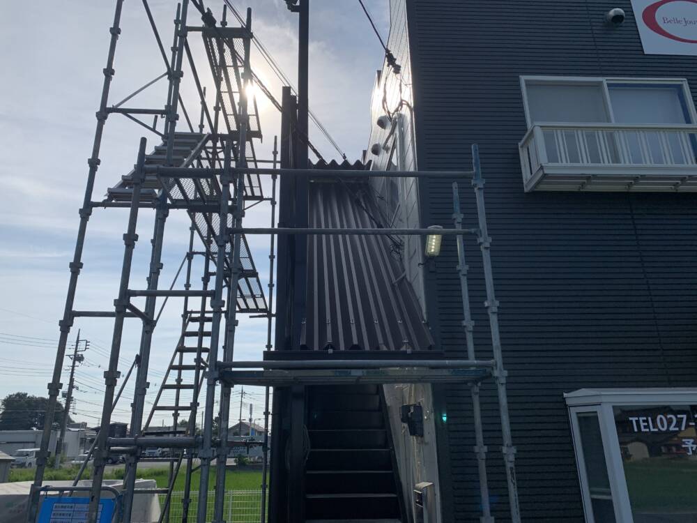 さて、今回群馬県にきて一発目の現場は、会社の外部階段の屋根塗りでした。