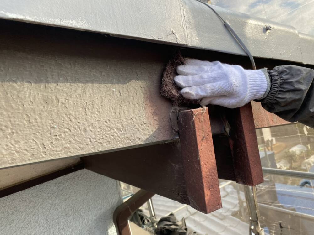ケレン作業により密着の良い下地を作っています。