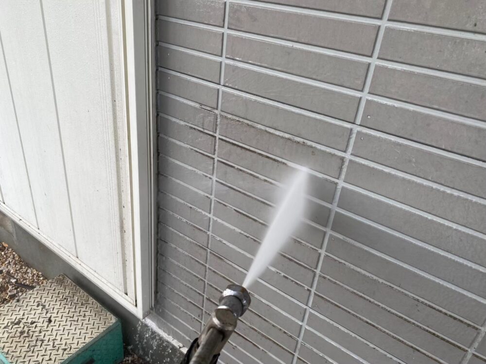 外壁の高圧洗浄をしています。