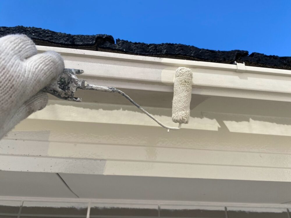 軒天塗装をしています。