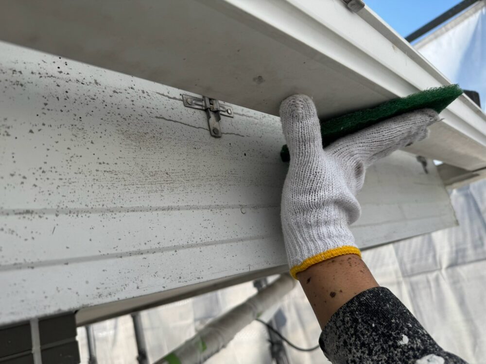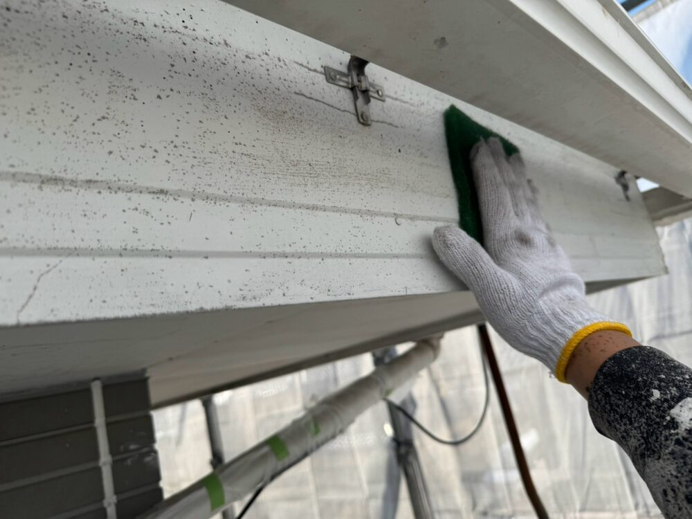 雨樋の下地調整をしています。