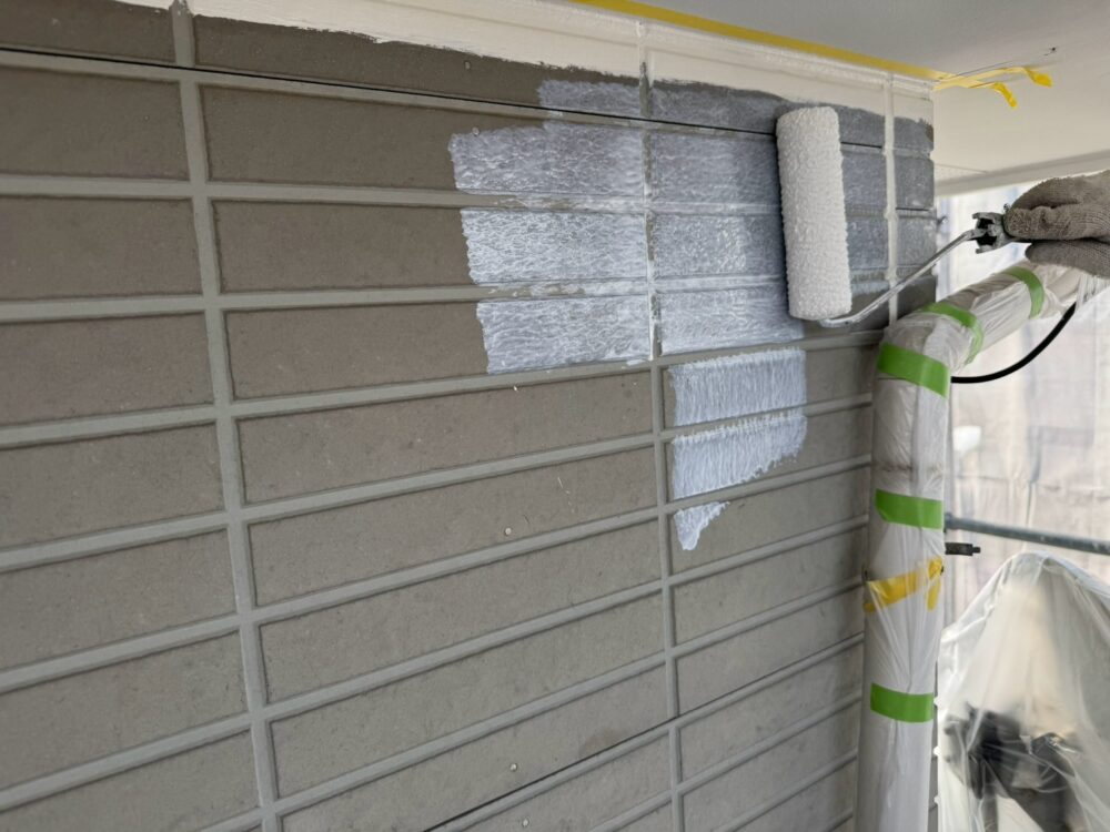 外壁の下塗りをしています。