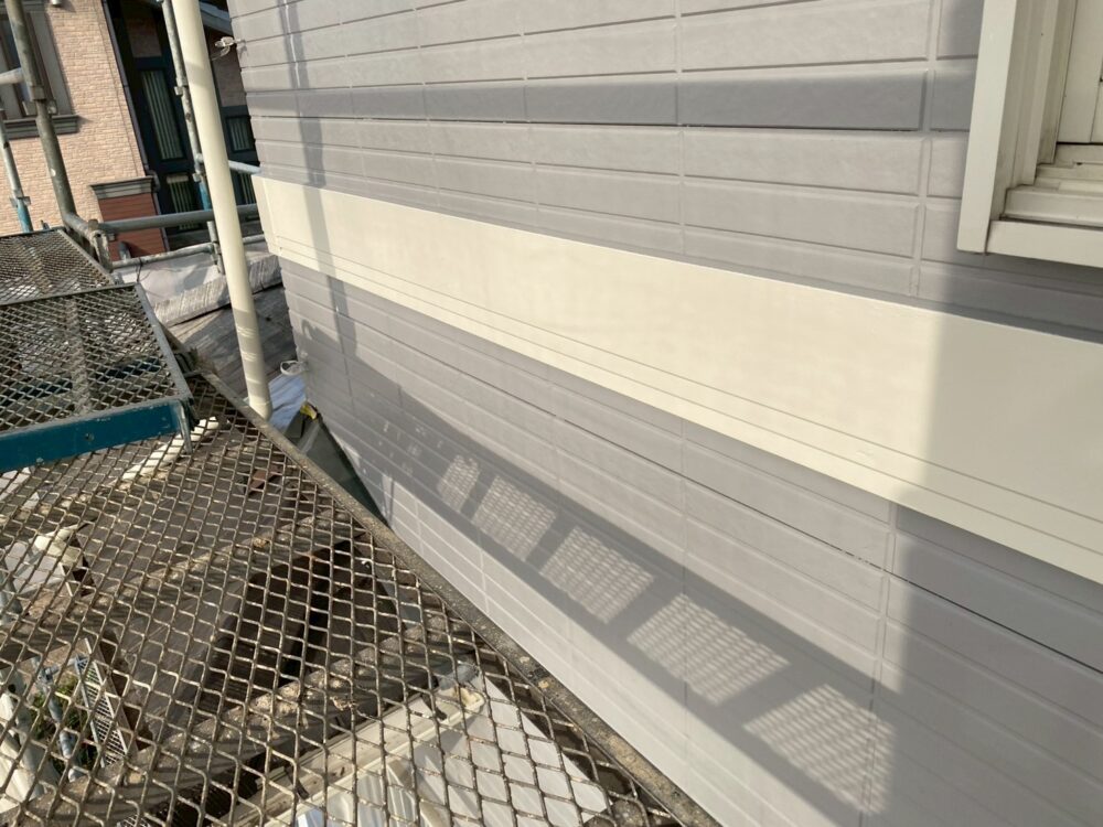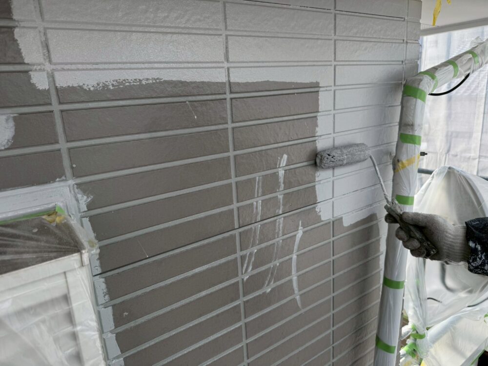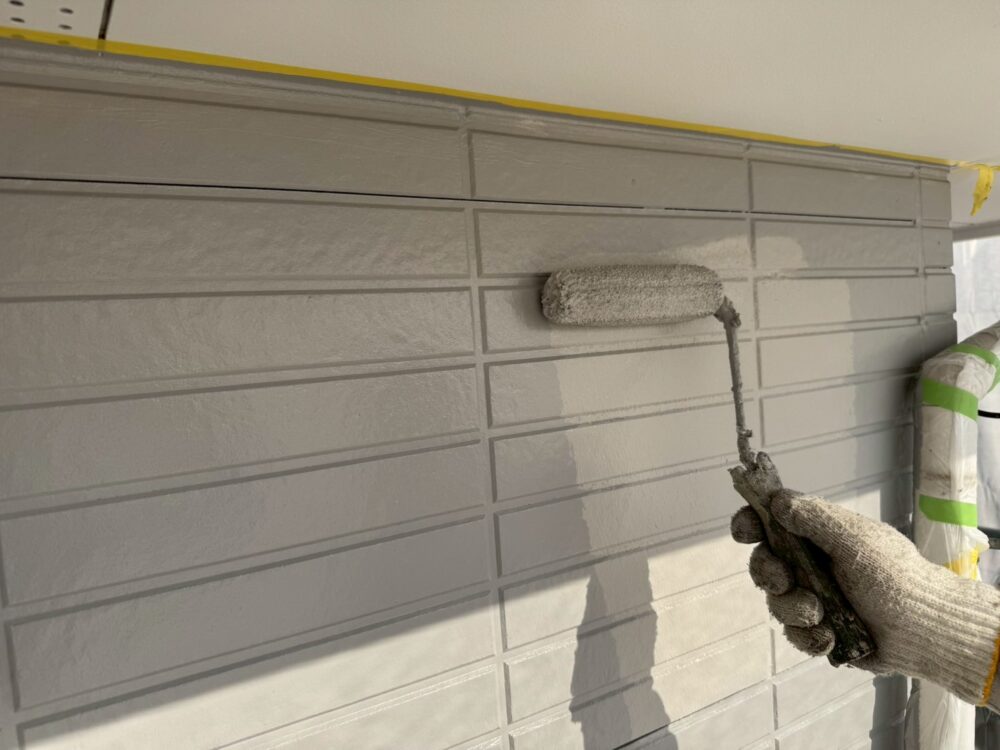 外壁の中塗りをしています。