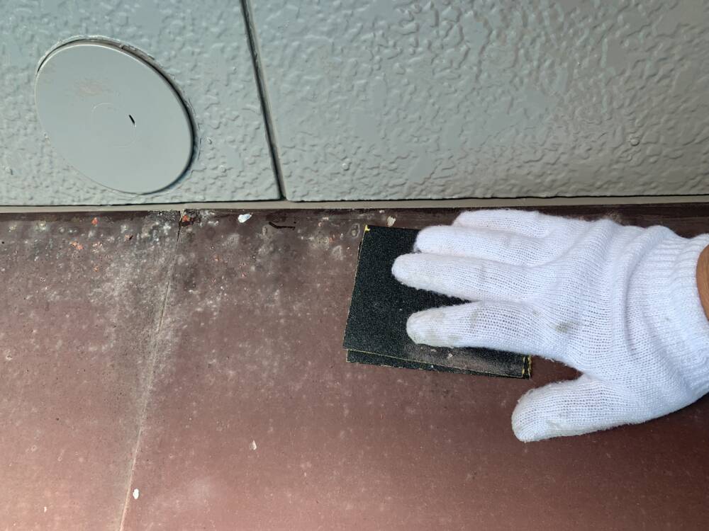 鉄部ケレン作業です。塗料との密着をよくして余分な錆びを落としています。