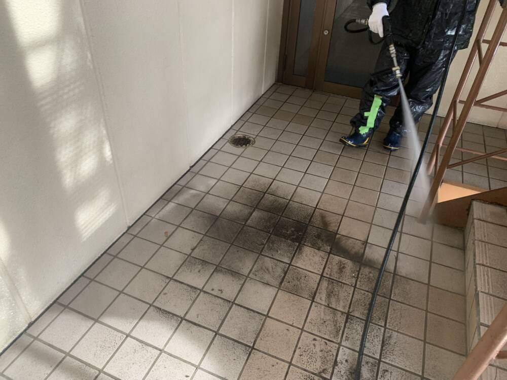 床もしっかりと洗っています。