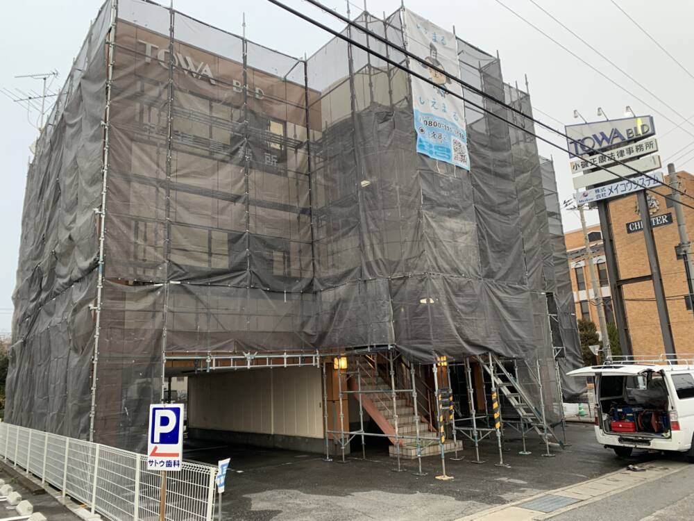 飛散防止及び落下防止のため足場をしっかりと組んでいます。
