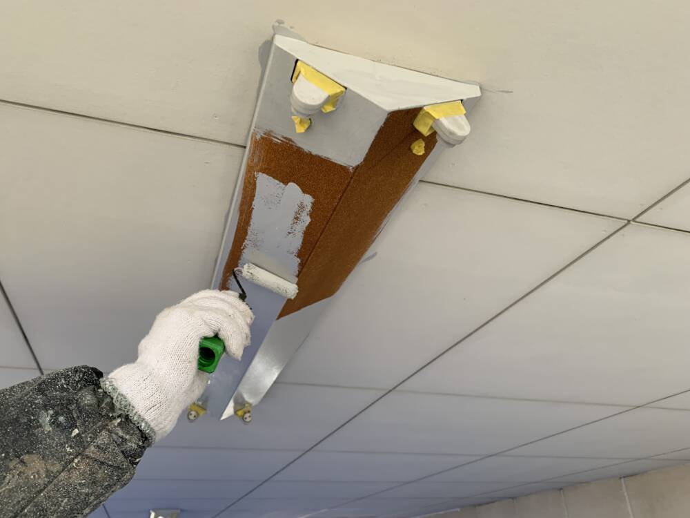 鉄部サビ止め施工中です。