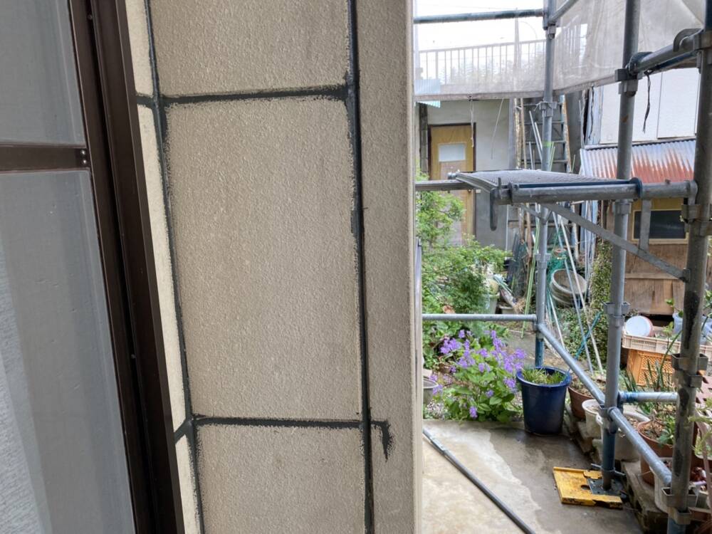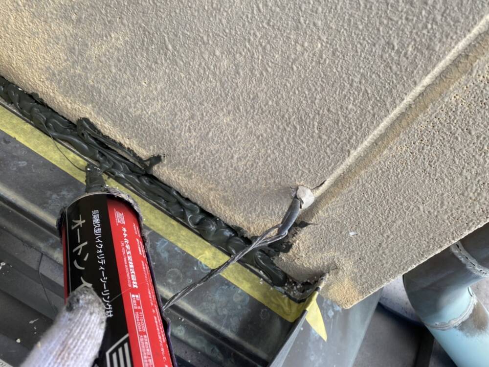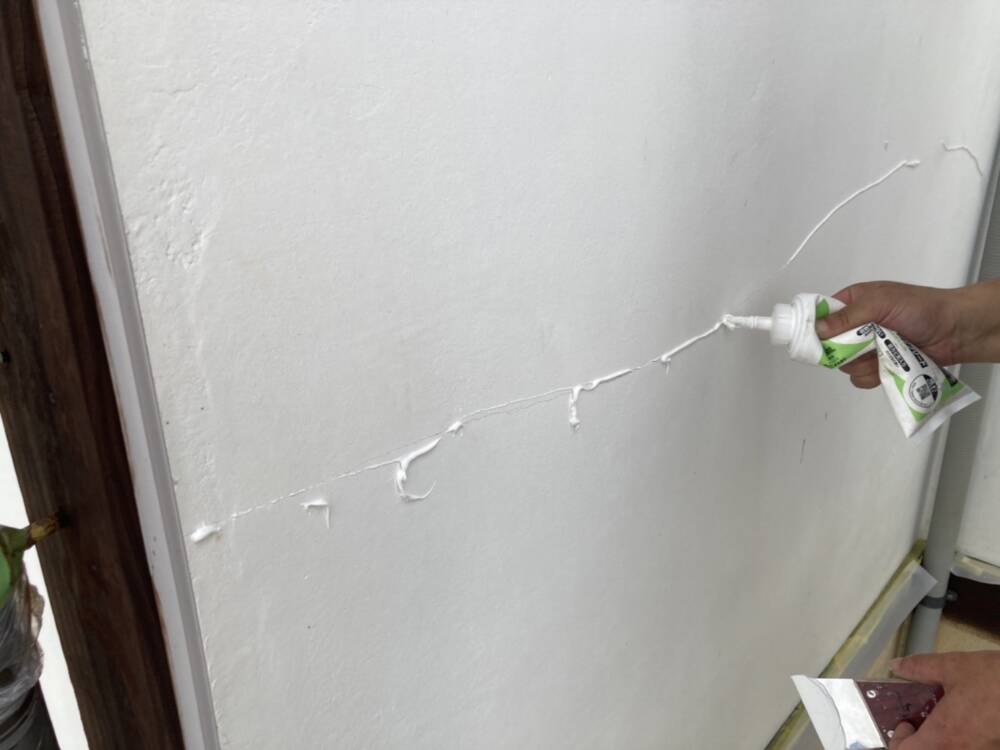隅々までクラック補修をしています。