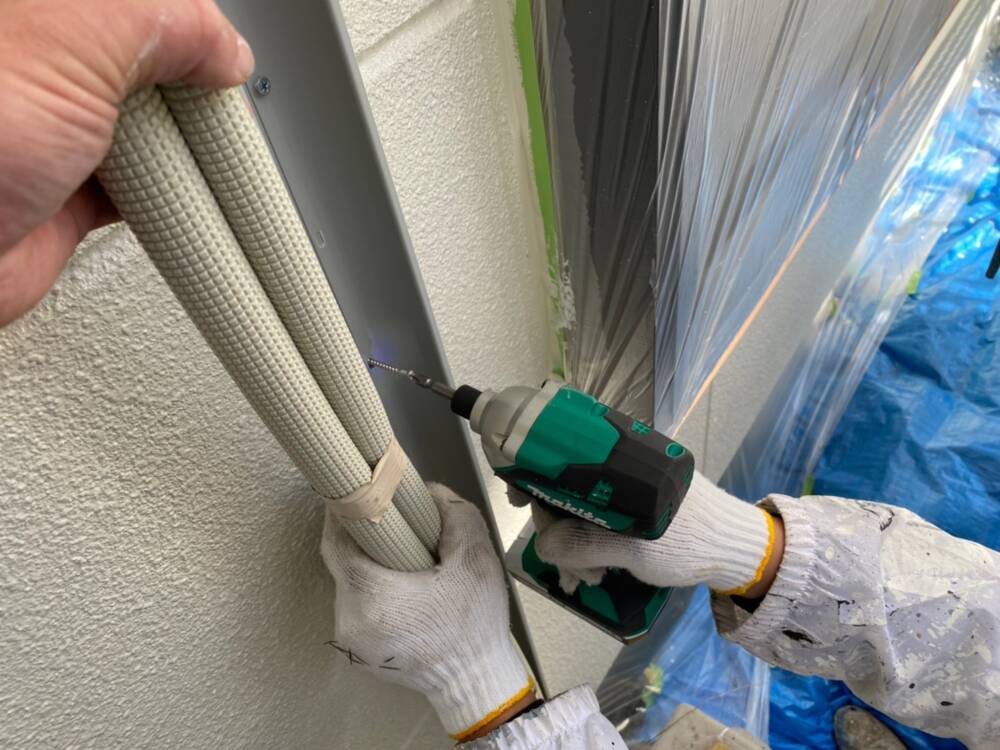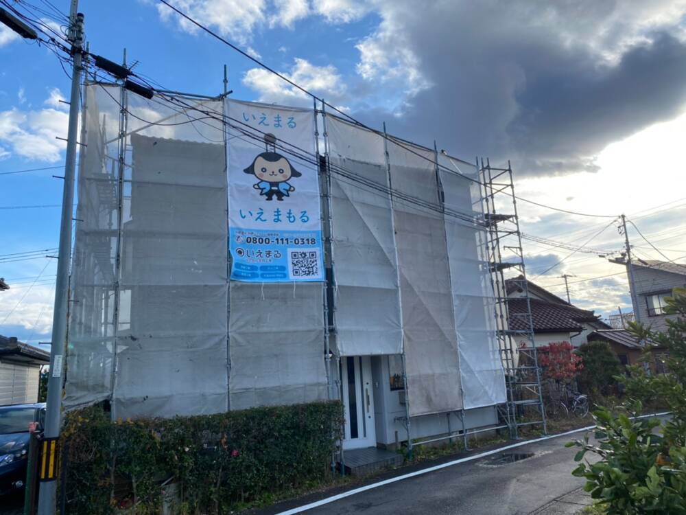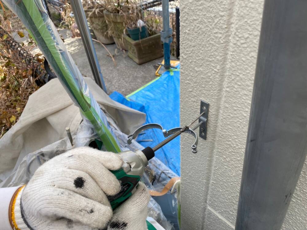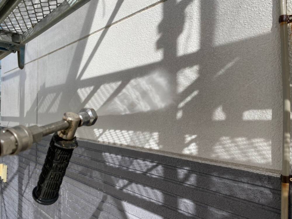 外壁の高圧洗浄です。 古い塗膜や汚れを落としています。