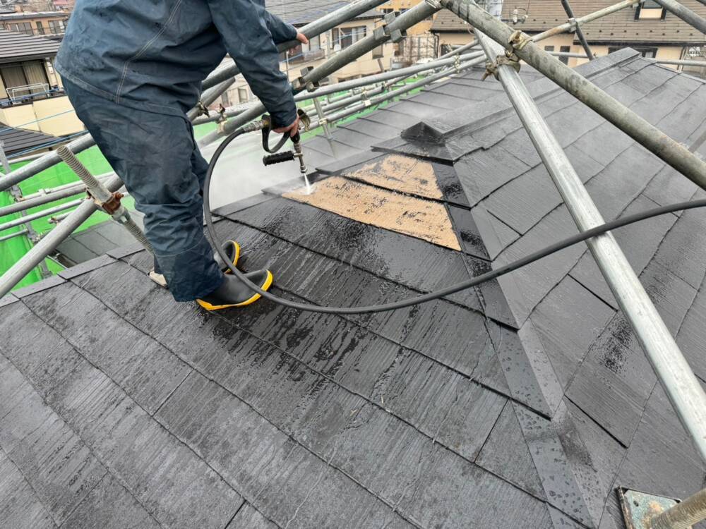 まだ施工途中ですが高圧洗浄をしただけで殆ど剥がれてしまいます。